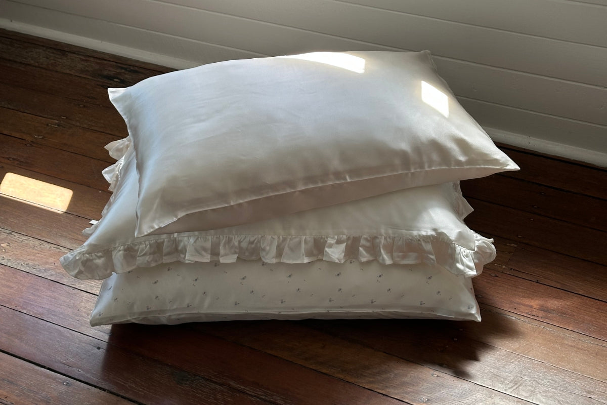 Silk pillowcases reduce friction between hair and fabric, which helps minimise frizz and keeps hair smoother overnight.